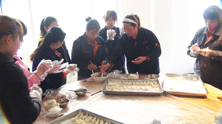 2016年3月8日下午,公司在一楼职工活动室为全体女职工过了一个别开生面的女神节。 食堂提前准备好了饺皮和馅料,70多名女员工全部自己动手包饺子,送到食堂煮好,再端回来热热闹闹吃饺子,最后领取妇女节慰问礼品。各种形状的饺子,代表了不同地域的人。代表着一家团圆的饺子,让长年在外务工的员工体会到了家的温暖。